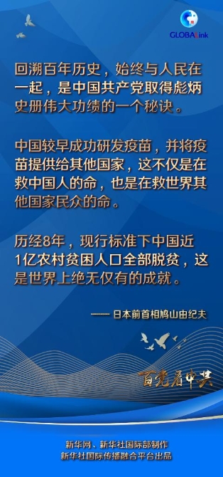 新華社東京6月1日電 記者郭丹 “回溯百年歷史,始終與人民在一起,是中國共產(chǎn)黨取得彪炳史冊偉大功績的一個秘訣。”日本前首相鳩山由紀(jì)夫日前在接受新華社記者書面采訪時說。