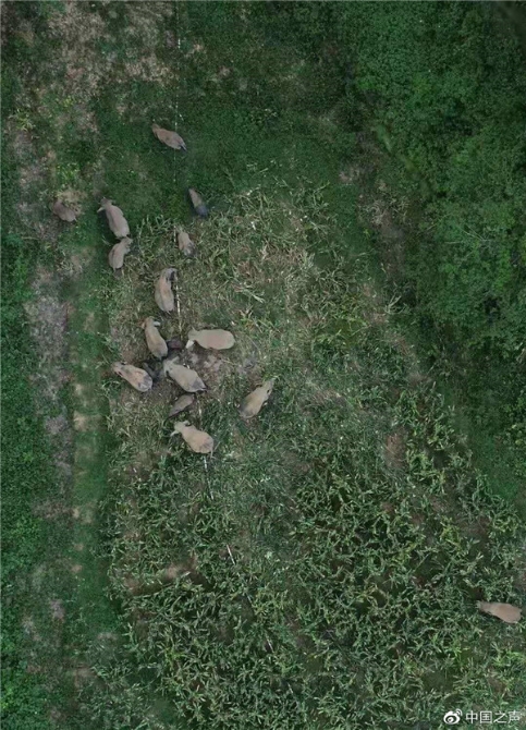 進(jìn)食中的象群。圖源中國(guó)之聲微博