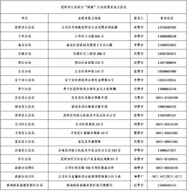 昆明警方“團圓”行動血樣免費采集點