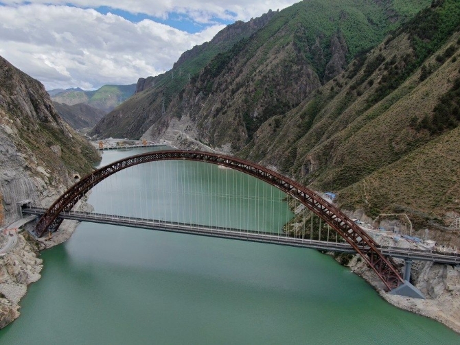 由中鐵二院勘察設(shè)計(jì)的拉林鐵路藏木雅魯藏布江雙線特大橋(2021年5月27日無人機(jī)拍攝)。受訪者供圖