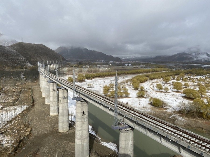 拉薩至林芝鐵路山南市境內(nèi)的橋梁(2020年4月5日攝)。新華社記者 劉洪明 攝