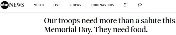 “在這個(gè)陣亡將士紀(jì)念日,我們的軍隊(duì)需要的不只是一個(gè)敬禮。他們需要食物?!?/p>