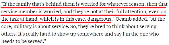 針對(duì)美國軍人家庭的境遇,ASYMCA組織營銷主管多琳·奧坎布認(rèn)為,如此對(duì)待這些服務(wù)于國家的人于理不通,而且隱患巨大?!叭绻砗蟮募胰颂幱诮箲]之中,那么軍人自身也會(huì)憂心忡忡,以至于無法全身心執(zhí)行任務(wù)。這種情況無疑是很危險(xiǎn)的”。