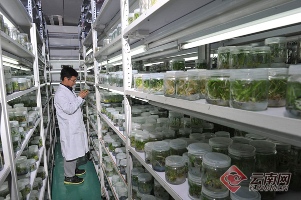 “植物離體庫(kù)里保存有國(guó)內(nèi)僅云南有分布的大花萬(wàn)代蘭、版納蝴蝶蘭等,對(duì)未來(lái)種質(zhì)創(chuàng)新和品種選育具有重要價(jià)值。鼓槌石斛、梳唇石斛等藥用植物,為含天然成分面膜化妝品、食品提味添加劑的開發(fā)儲(chǔ)備了資源?!焙慰≌f(shuō)。