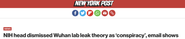 據(jù)《紐約郵報(bào)》2日?qǐng)?bào)道,新公布的郵件顯示,美國(guó)國(guó)家衛(wèi)生研究院院長(zhǎng)柯林斯曾在郵件中駁斥新冠病毒起源于“武漢實(shí)驗(yàn)室”的說(shuō)法,批評(píng)這是陰謀論。