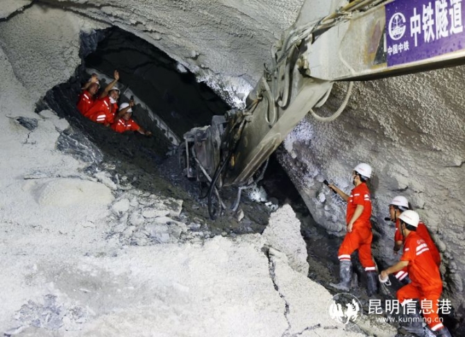 “自開(kāi)工以來(lái),隧道共發(fā)生涌水突泥、坍塌、軟巖變形等險(xiǎn)情近千次,隧道單日最大涌水量達(dá)7.5萬(wàn)立方米,可灌滿30個(gè)標(biāo)準(zhǔn)游泳池?!庇衲ヨF路19標(biāo)項(xiàng)目部經(jīng)理劉鐵成說(shuō),施工過(guò)程中給我們?cè)黾恿撕芏嗬щy,我們加倍投入人員和設(shè)備的保障,舉全局資源確保隧道施工安全穩(wěn)定推進(jìn)。