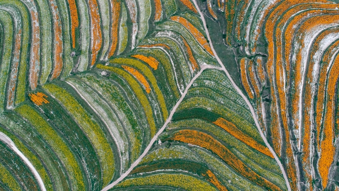寧夏固原市彭陽(yáng)縣旱作梯田(無(wú)人機(jī)照片,2019年8月13日攝)。新華社記者馮開(kāi)華攝