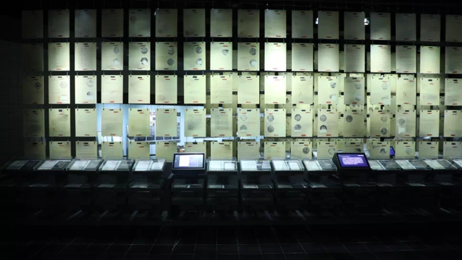 侵華日軍第七三一部隊罪證陳列館人體實驗展區(qū),一張張英文人體實驗報告書復印件,連成一面墻。新華社記者何山攝