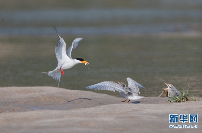 第一批河燕鷗順利成長(攝于2021年4月)。新華網(wǎng)發(fā)(沙永勝 攝)