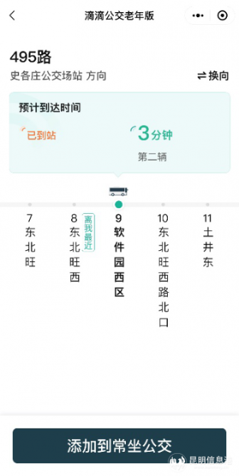 用戶(hù)可通過(guò)“滴滴公交老年版”小程序了解公交車(chē)實(shí)時(shí)位置、預(yù)計(jì)到站時(shí)間等信息,減少戶(hù)外等車(chē)時(shí)間。經(jīng)過(guò)適老化改造后,“滴滴公交老年版”頁(yè)面更簡(jiǎn)潔、明了,方便操作。