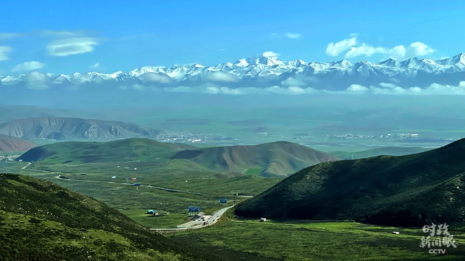 從海北州門源縣,能遠(yuǎn)眺到祁連山脈。(總臺(tái)央視記者楊新禹拍攝)