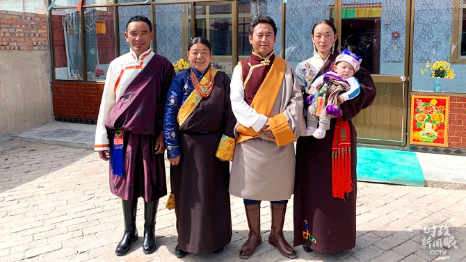 索南才讓(左一)一家當(dāng)天拍攝的全家福(總臺(tái)央視記者段德文拍攝)