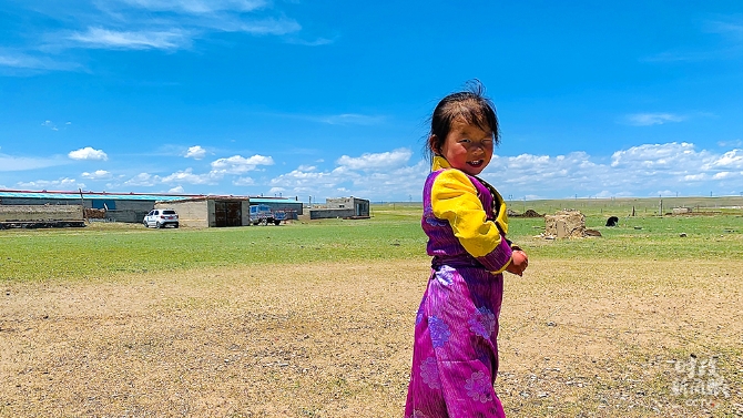 俏皮的剛察縣藏族女孩兒(總臺(tái)央視記者范一鳴拍攝)