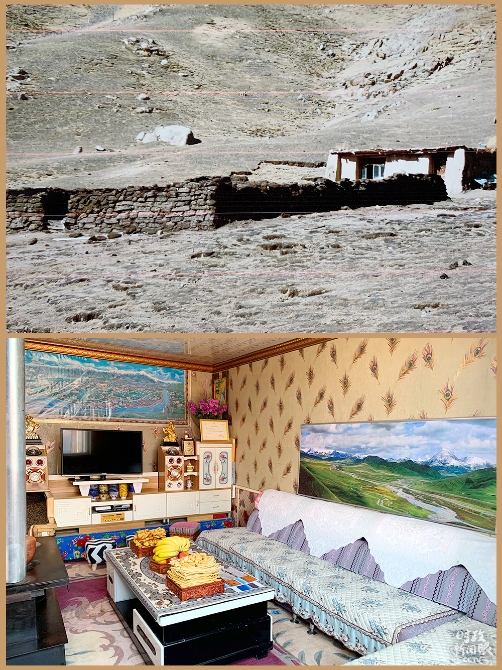 索南才讓一家新舊房屋對(duì)比,舊居拍攝于2014年前。(總臺(tái)央視記者邢彬、段德文拍攝)