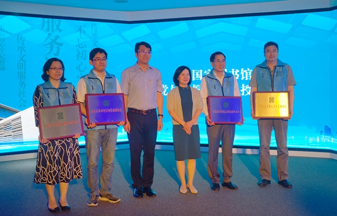 6月8日上午,國家圖書館新閱讀空間開放暨黨員志愿服務(wù)總隊成立活動在國家圖書館總館北區(qū)舉行。活動現(xiàn)場,國家圖書館黨委書記、副館長魏大威,國家圖書館副館長、黨委副書記陳櫻為4支黨員志愿服務(wù)分隊代表授牌。