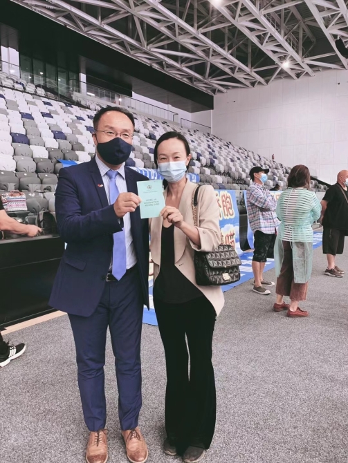 接種現(xiàn)場秩序井然,在毛中國同胞們嚴格遵守防疫規(guī)定,全程佩戴口罩,保持社交距離,在醫(yī)務人員和領保志愿者的引導下,經(jīng)過測量體溫、核對信息、健康詢問、了解注意事項等流程后依次接種,隨后進行半小時的留觀。在拿到接種證書后,眾人紛紛在“春苗行動”條幅前合影留念,感謝祖國對海外游子的關愛,為中國政府的“春苗行動”點贊。