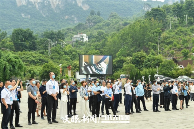 現(xiàn)場,由化屋群眾組建的歌舞隊(duì)用苗家熱情歌舞歡迎參訪嘉賓。大家一邊欣賞,一邊用手機(jī)記錄下動(dòng)聽的苗歌和美妙的舞姿。