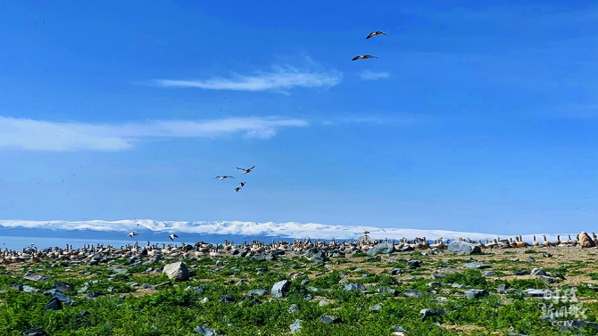 數(shù)千只斑頭雁在青海湖邊筑巢。(圖/視覺中國)