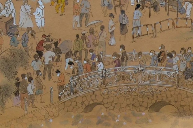 創(chuàng)作了一幅“核酸檢測(cè)上河圖”