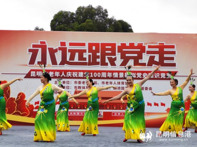 昆明信息港訊 記者李麗朱 實(shí)習(xí)記者韓嚴(yán) 6月10日,由昆明市委老干部局和昆明市老年人體育協(xié)會(huì)共同舉辦的昆明市老年人慶祝中國(guó)共產(chǎn)黨成立100周年系列活動(dòng)在海埂公園舉行。近1000名老年人代表歡聚一堂,觀看主題文體節(jié)目展演、百年黨建歷史回顧展覽,參加黨建知識(shí)問(wèn)答,趣味游園等活動(dòng)。
