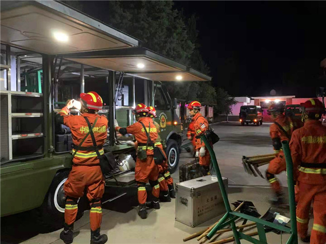 作為支隊(duì)快反分隊(duì),一中隊(duì)目前正值靠前駐防歸建階段,部分指戰(zhàn)員往返于支隊(duì)搬運(yùn)裝備器材。接到支隊(duì)命令后,中隊(duì)立即啟動(dòng)應(yīng)急預(yù)案,在家備勤人員快速將剪切鉗、頂撐器、擴(kuò)張器、鋼筋速斷器等50余件套地震救援裝備物資裝車(chē),運(yùn)送裝備人員也快速向晉寧駐防點(diǎn)開(kāi)進(jìn),全員做好抗震救災(zāi)準(zhǔn)備。