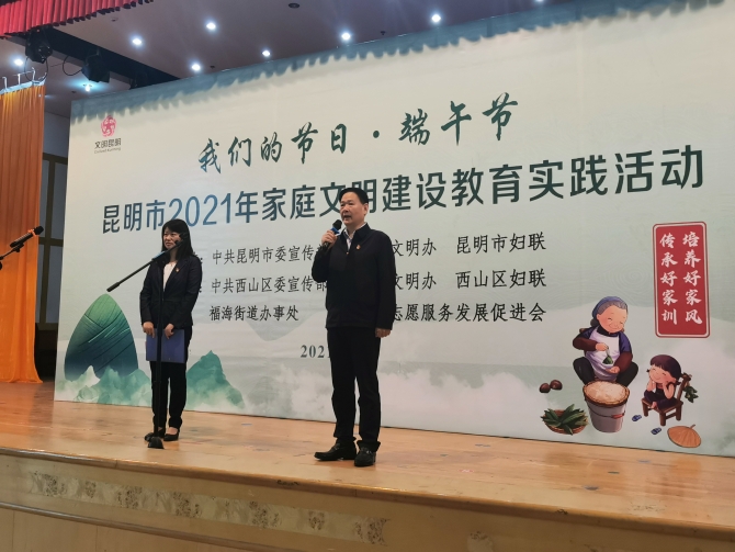 昆明信息港訊 記者尹吉 情濃端午,粽葉飄香。6月11日,“我們的節(jié)日?端午”昆明市2021年家庭文明建設(shè)教育實(shí)踐活動(dòng)在西山區(qū)福海街道啟動(dòng)?;顒?dòng)以“傳遞文明家庭新風(fēng)尚,助力文明城市常態(tài)長(zhǎng)效建設(shè)”為主題,全市部分全國(guó)文明家庭,省、市、區(qū)文明家庭、最美家庭代表參加了活動(dòng)。