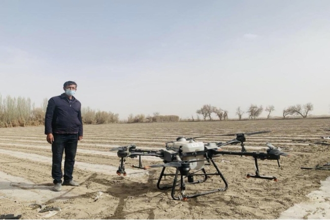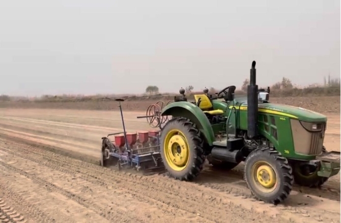 阿克蘇柳源片區(qū)管委會天海村寧左福家的無人駕駛播種機