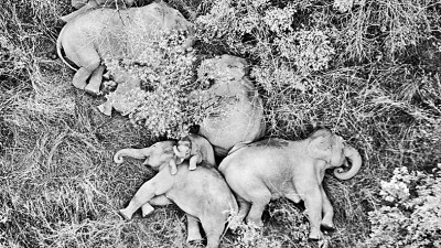 近日,一張由云南省森林消防總隊無人機監(jiān)測任務分隊監(jiān)測拍攝的照片走紅網(wǎng)絡,畫面中亞洲象群在昆明市晉寧區(qū)夕陽鄉(xiāng)賴家新村山林地里睡覺休息。云南省森林消防總隊供圖