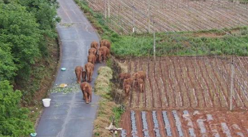 6月5日15時(shí)10分,象群由昆明市晉寧區(qū)雙河鄉(xiāng)進(jìn)入夕陽鄉(xiāng)活動(dòng),人象平安。云南省森林消防總隊(duì)供圖