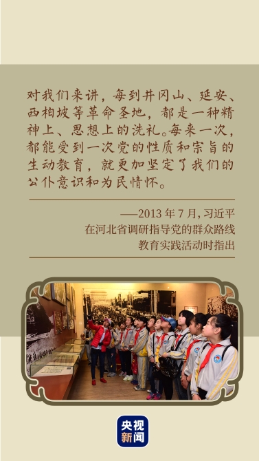 從上海中共一大會(huì)址、浙江嘉興南湖紅船到西柏坡七屆二中全會(huì)舊址,從沂蒙革命老區(qū)到湘江戰(zhàn)役紀(jì)念園……讓我們跟隨總書(shū)記的足跡,了解革命文物故事,傳承紅色基因。