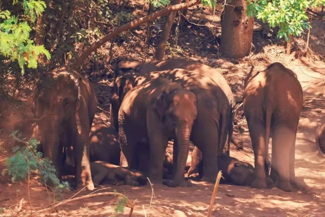 聽媽媽說,很久以前,我們大象遇到他們會很危險,雖然他們看起來弱不禁風(fēng),但卻有一根短棍子,會發(fā)出可怕的聲音;后來,他們沒有短棍子了,也不再驅(qū)趕我們,有時我們找不到吃的,到他們的房子周圍,總能找到吃的。