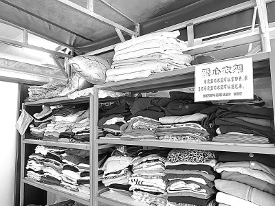 ??谑忻捞m區(qū)白沙門環(huán)保教育站,市民將不需要的衣物放到愛心衣架,供需要的人取用。 本報記者 李睿宸攝/光明圖片