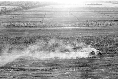 在新疆阿克蘇地區(qū)沙雅縣,農用機械在采收完的棉田里進行殘膜回收、秸稈粉碎還田作業(yè)。新華社發(fā)