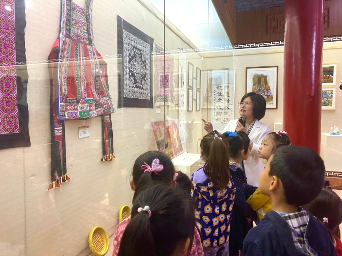講解員給小朋友介紹非遺作品現(xiàn)場(chǎng) 供圖