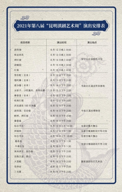 附:2021年第八屆“昆明滇劇藝術(shù)周”演出安排表