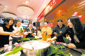 6月11日,紅云社區(qū)舉行包粽子比賽歡度端午節(jié)。 記者李海曦?cái)z