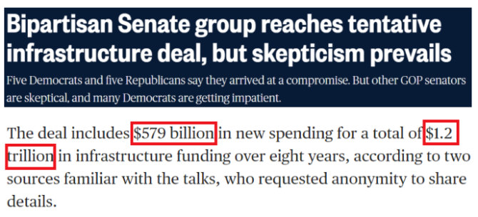 當(dāng)?shù)貢r(shí)間10日下午,一個(gè)由兩黨各5名參議員組成的跨黨派小組宣布就拜登的基礎(chǔ)設(shè)施建設(shè)計(jì)劃達(dá)成一項(xiàng)“折衷框架協(xié)議”,該協(xié)議包括5790億美元的新支出,用于未來8年總計(jì)1.2萬億美元的基礎(chǔ)設(shè)施融資。