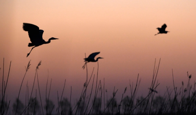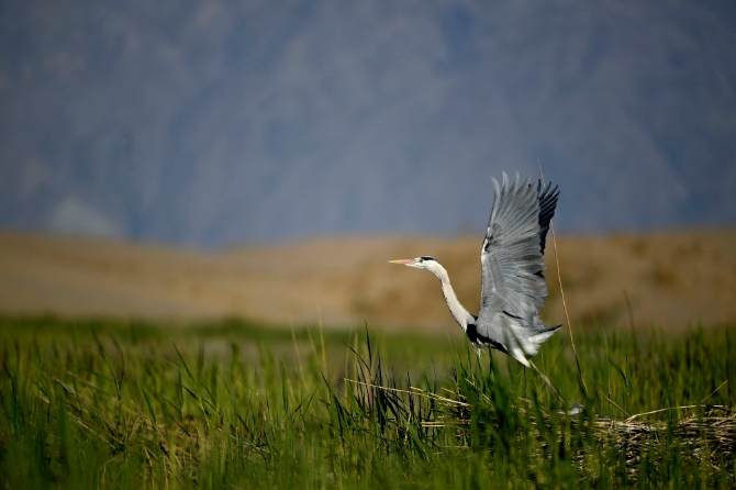 清晨,蒼鷺在寧夏沙湖景區(qū)蘆葦叢上空飛翔(2020年4月25日攝)。新華社記者 王鵬 攝