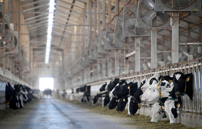寧夏農(nóng)墾賀蘭山奶業(yè)有限公司奶牛養(yǎng)殖大棚(2020年11月8日攝)。新華社記者 王鵬 攝