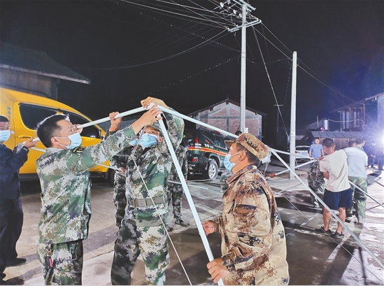 應(yīng)急民兵幫助群眾搭建帳篷。 本報(bào)通訊員 柯穴 思治生 攝