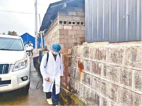 疫情防控人員開展消殺。 本報(bào)記者 管毓樹 攝