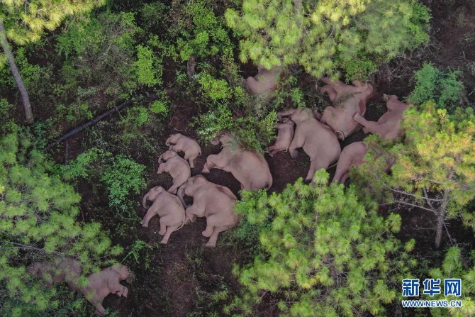 這是6月13日在云南省玉溪市易門縣十街鄉(xiāng)拍攝的象群(無人機(jī)照片)。新華社發(fā)