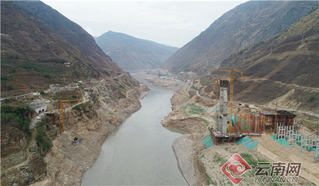金沙江特大橋全長(zhǎng)565米,主跨為340米鋼箱梁,邊跨為152米預(yù)應(yīng)力混凝土箱梁,引橋?yàn)?跨35米鋼混組合梁,為國(guó)內(nèi)最大跨度的P-K鋼箱混合梁獨(dú)塔斜拉橋,大橋主墩高達(dá)197.6米,現(xiàn)已施工128米,剩余69.6米,計(jì)劃今年10月底封頂。