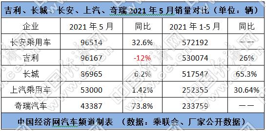 去年同期低基數(shù)帶來的增量,在5月已基本消除。數(shù)據(jù)顯示,5月,國內(nèi)狹義乘用車共銷售162.3萬輛,同比增長1%,銷量走勢基本回歸正常。有著“自主三強(qiáng)”之稱的吉利、長城、長安,增速正出現(xiàn)嚴(yán)重分化:多年的 “自主一哥”——吉利汽車,已經(jīng)連續(xù)2個月出現(xiàn)銷量同比下滑,跌幅還呈現(xiàn)明顯擴(kuò)大態(tài)勢;前兩年遭遇轉(zhuǎn)型陣痛的長安和長城,目前正處于紅利的收獲期,兩家企業(yè)的銷量增幅均跑贏車市大盤。