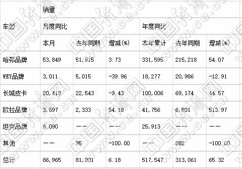 據(jù)長城汽車6月8日發(fā)布的數(shù)據(jù)顯示,5月,長城汽車共銷售新車86965輛,同比增長6.2%;1-5月的累計銷量達(dá)517547輛,同比增長65.3%,已完成年度銷量目標(biāo)的46.21%。