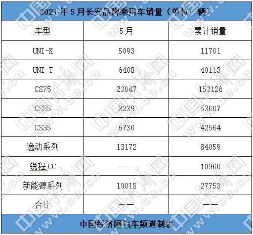 分車型來看,長安乘用車品牌旗下的UNI-K、UNI-T、CS75、CS55、CS35、逸動系列,在5月的銷量分別為5093輛、6408輛、23047輛、8239輛、6730輛、13172輛。長安在本月初還公布了旗下新能源產(chǎn)品的銷量:長安新能源5月交付10018輛,同比增長1351%;1-5月累計銷售27753輛,超去年全年總量。令人頗感意外的是,長安本月沒有公布銳程CC的銷量。