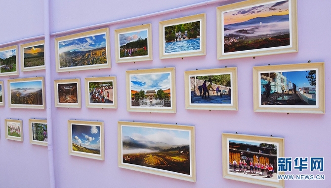 村里的照片墻不僅展示了石橋村的自然美景和人文風(fēng)情,也記錄了村民建設(shè)村莊、美化村莊的進(jìn)程(5月18日攝)。新華網(wǎng)發(fā)(徐華陵 攝)