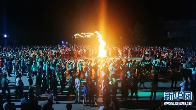 夜幕降臨,村民們經(jīng)常聚在一起舉行篝火晚會(huì)(資料圖)。新華網(wǎng)發(fā)(供圖)