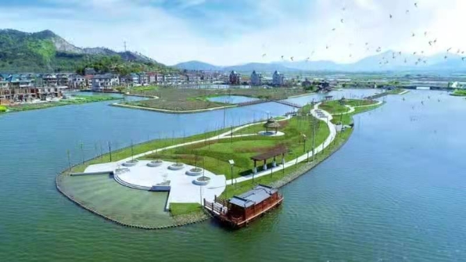浙江紹興上虞鄉(xiāng)村水上公園一景。新華網(wǎng)發(fā)(于宣 供圖)