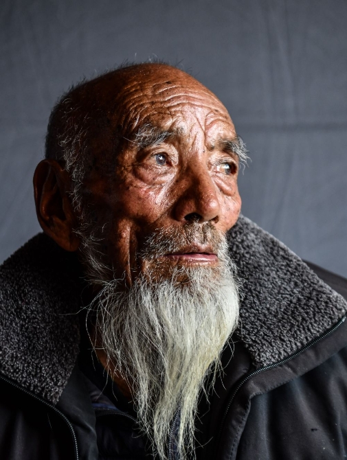 次多杰老人的肖像(4月25日攝)。